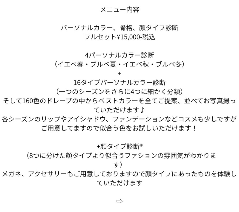 | 女性限定4シーズンパーソナルカラー診断+16タイプパーソナルカラー診断+骨格診断+顔タイプ診断®︎、フルセットコース |