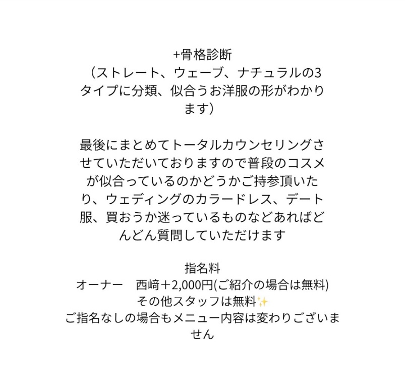 | ペア診断女性限定4シーズンパーソナルカラー診断+16タイプパーソナルカラー診断+骨格診断+顔タイプ診断®︎、フルセットコース |