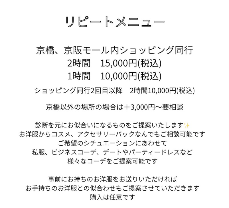 | ¥15,000円-(税込) 所要時間約2時間 |